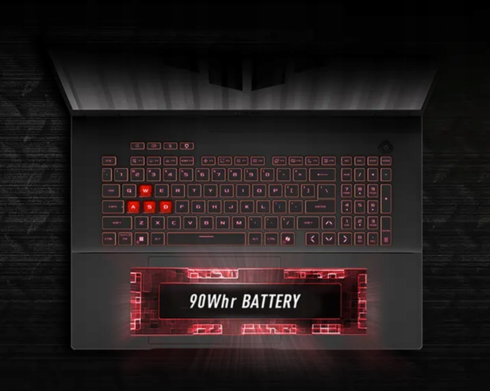 Kiedy tylko potrzebujesz grać lub pracować w drodze, najnowszy model TUF Gaming A18 ma aż nadto energii, aby na to pozwolić. Duża bateria 90 Wh pozwala na pracę z dala od sieci elektrycznej przez dłuższy czas, a zasilanie przez port USB-C ułatwia naładowanie go nawet, kiedy zapomnisz zasilacza.