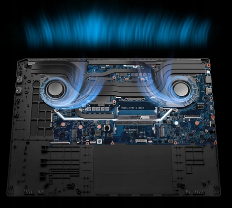 Dodaliśmy niewielkie zagięcia na końcu każdej z 84 głównych łopatek, które zmniejszają zarówno zużycie energii, jak i turbulencje. Wentylatory wyróżniają się teraz konstrukcją z dwoma wirnikami i mniejszym zestawem 42 łopatek wewnątrz. Umożliwia to zasysanie większej ilości powietrza przy każdym obrocie, podobnie jak w przypadku turbiny silnika odrzutowego. Wentylatory te zużywają o 16% mniej energii, zwiększając jednocześnie przepływ powietrza o 11%, dzięki czemu wysokowydajne komponenty wewnętrzne mogą pracować z najwyższą możliwą wydajnością.