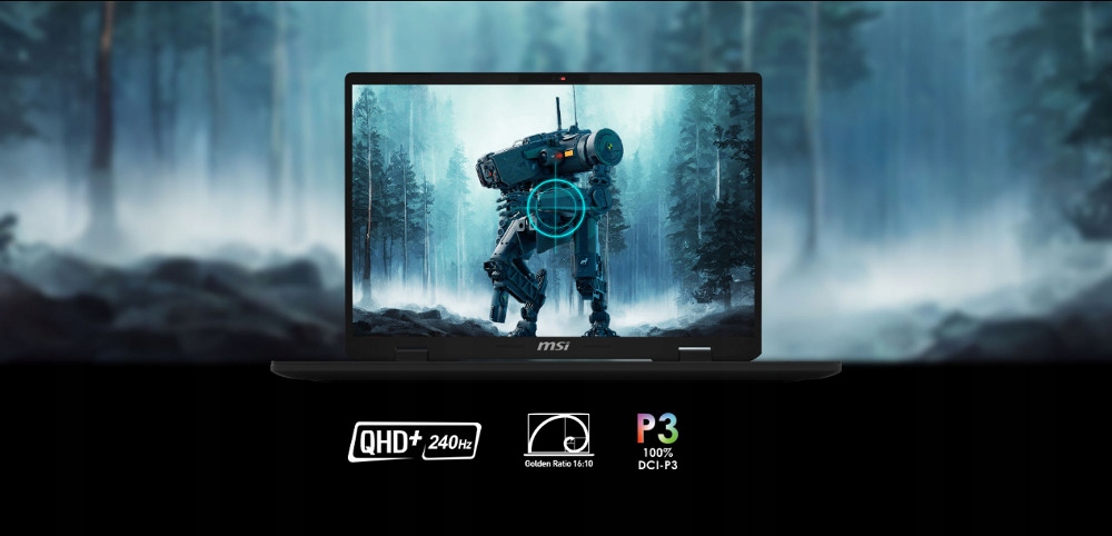 - Matowa matryca IPS o przekątnej 16" o rozdzielczości QHD+ 16:10 i częstotliwości odświeżania 240Hz i pokryciem kolorów 100% DCI-P3